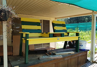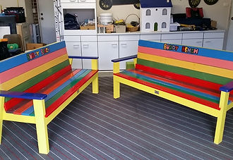 We made two Buddy Benches for Bennett Road Primary School. They were painted bright colour...