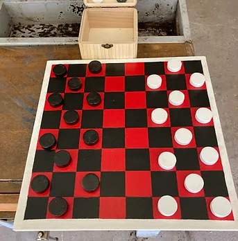 This Draughts Set was designed and made by Neil Baker for his family funt took a steady ha...